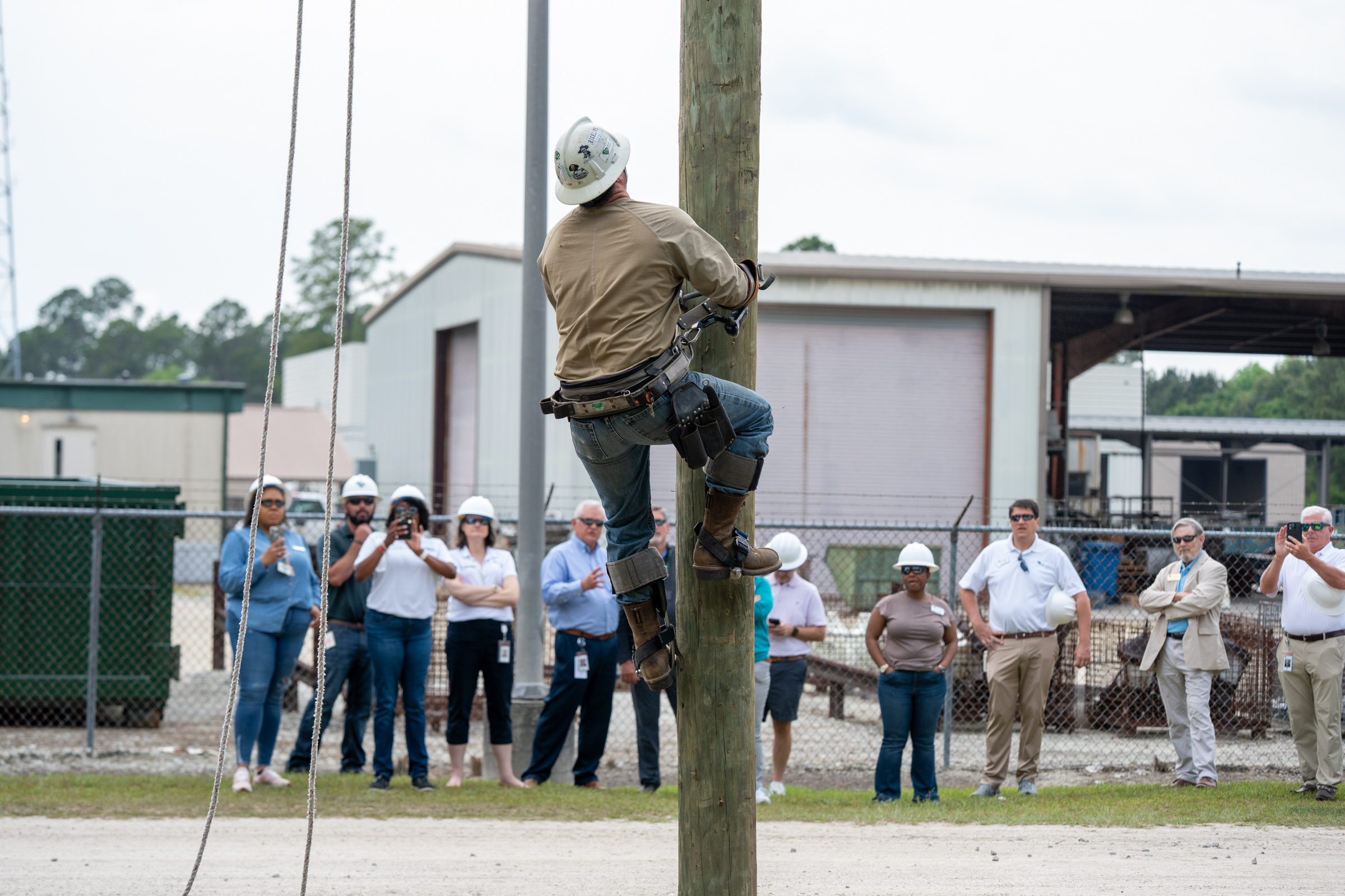 In the afternoon, the group moved outside for the Power Line Hazards Awareness Demonstration (PHAD), as well as a line technician skills demonstration.