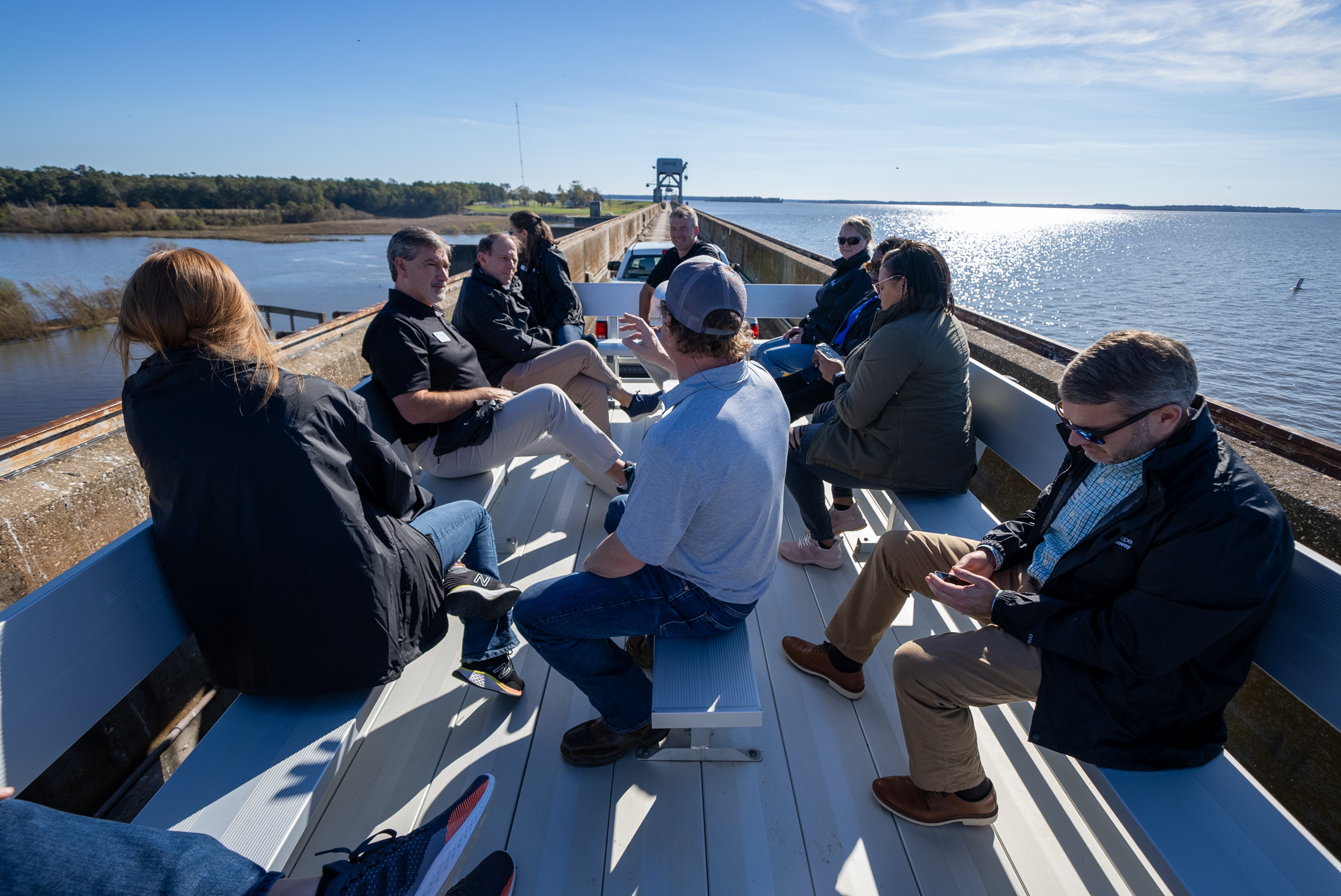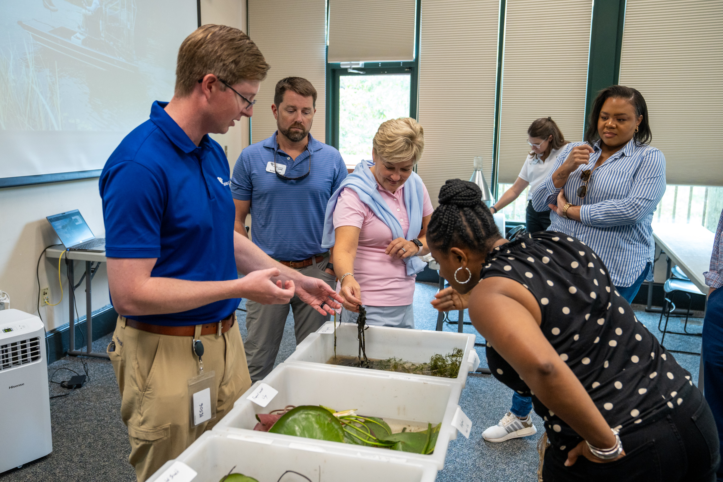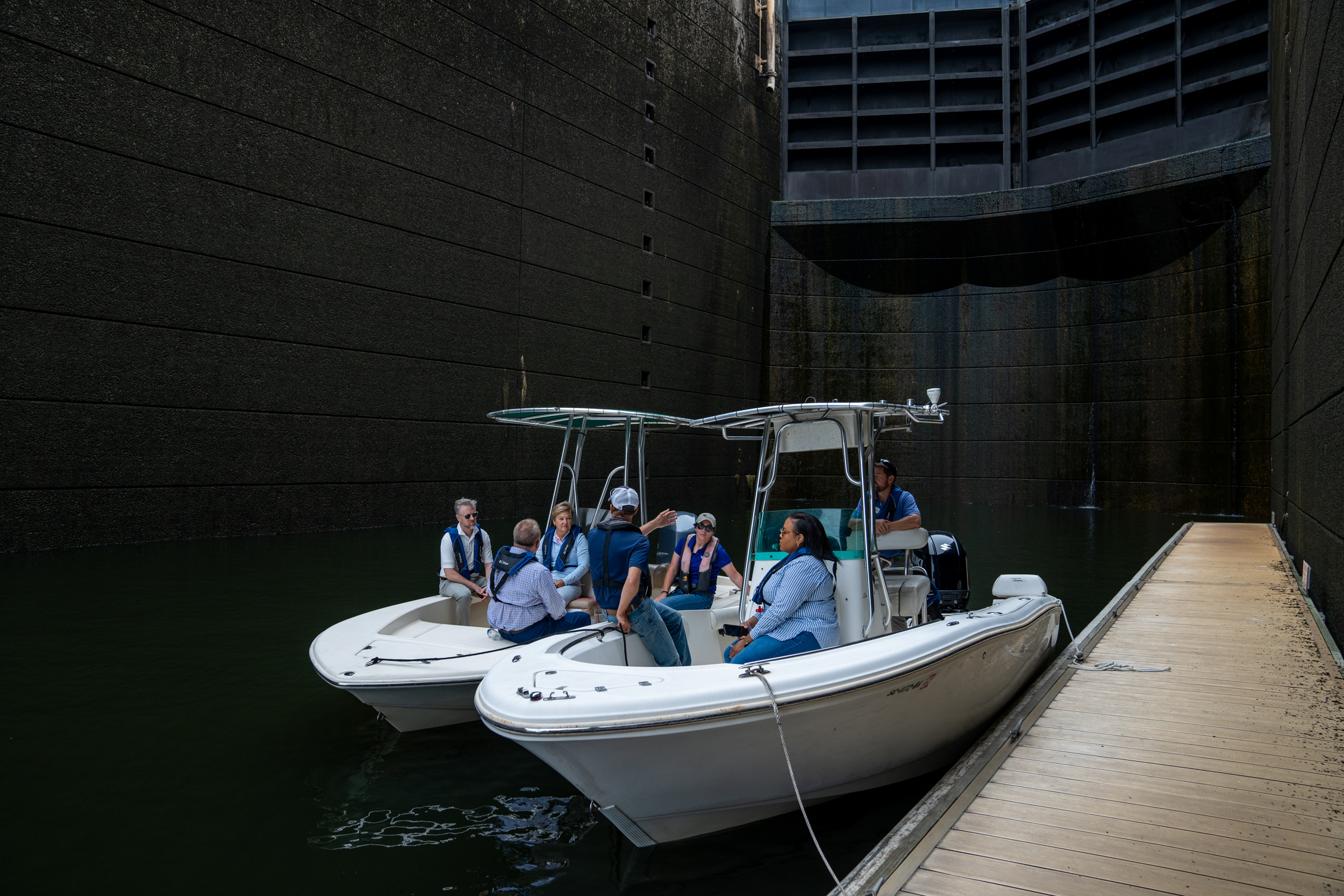 The afternoon agenda included an in-depth presentation on environmental and aquatic management. Santee Cooper’s biological services team led a live demonstration on aquatic vegetation control, showcasing the innovative use of weevils to manage invasive plant species in the lakes. Attendees also enjoyed a boat tour of the Pinopolis Lock and a visit to Old Santee Canal Park.